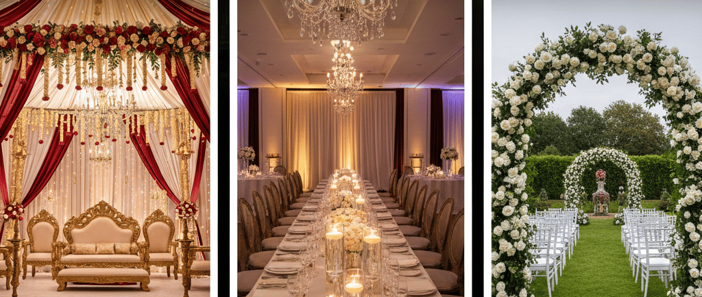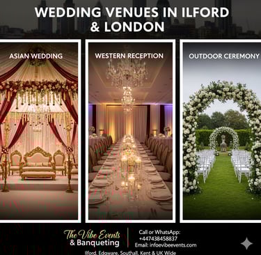 Explore premium wedding venues in Ilford, Edgware, Southall & Kent with décor, catering, DJ, photography & full event management by The Vibe Events.
